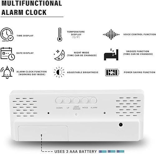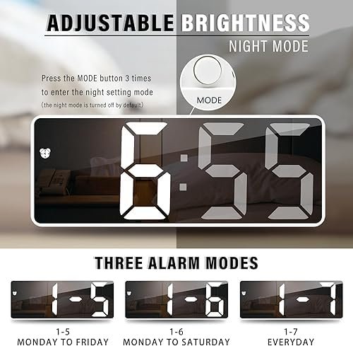 Details: Upgrade your daily timekeeping with this multifunctional LED Mirror Digital Alarm Clock, designed to seamlessly blend into any modern interior while offering practical features for everyday convenience. Measuring 6.5 inches, the wide display serves as both a mirror and a digital clock, making it a sleek and space-saving addition to your nightstand, office desk, or study area. Housed in a durable Acrylonitrile Butadiene Styrene (ABS) body, this clock offers long-lasting performance with a minimalist, high-gloss finish in classic white. The digital display shows time in both 12-hour and 24-hour formats, accommodating your preferred style with ease. Alongside time, it features a real-time temperature display, helping you stay informed about indoor climate conditions. The three-level adjustable brightness ensures optimal visibility during the day and a comfortable glow at night. Whether you need full brightness for daytime use or a dimmer display for sleep-friendly ambiance, this clock adapts to your environment. A key highlight of this clock is its intelligent power-saving function, which dims the screen when not in use—perfect for energy-conscious users or those who prefer minimal distractions at night. The compact form factor and USB-powered functionality make it ideal for dorms, travel, bedrooms, and modern workspaces. With a built-in alarm and snooze function, it also helps maintain punctuality without compromising on style or utility. Perfect for all ages and spaces, this LED mirror alarm clock merges contemporary aesthetics with smart utility, offering a practical solution for time, temperature, and decor—all in one versatile device.
