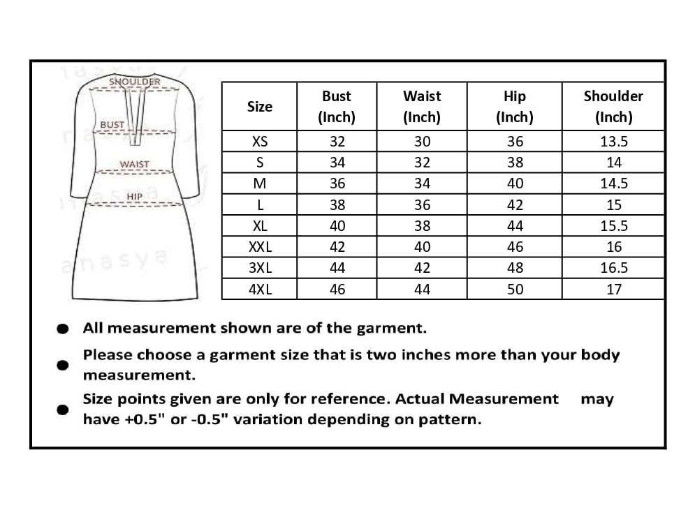 - Dress Length : 51 Inch || Sleeve Length : 3/4 Sleeves || Select required Bust Size from Filter Box XS(34), S (36), M (38), L (40), XL (42), 2XL (44),|| All Measurements Are As per Garment Not Body.