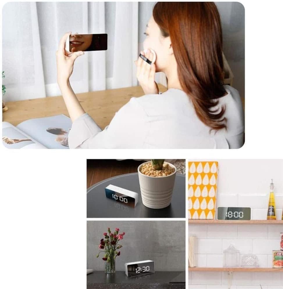 Details: Digital LED Mirror Alarm Clock, designed for modern living and convenience. Featuring a large, easy-to-read LED display, this multifunctional clock not only shows the time but also provides real-time temperature readings to keep your environment comfortable. The sleek mirror finish design adds a stylish touch to any space — whether it’s your bedroom, office desk, or travel bag. This smart LED alarm clock is equipped with a snooze function,heavy sleepers who need a few extra minutes of rest. The adjustable brightness settings ensure clear visibility during the day and a soft glow at night, preventing sleep disturbance. With its compact and lightweight design, it’s easy to carry while traveling or to place on your bedside table, study desk, or dressing area. Built with energy-efficient LED technology, this clock ensures low power consumption and long-lasting performance. It can be powered via USB or batteries, offering flexibility and convenience for any situation. The mirror surface doubles as a mini vanity mirror, adding practicality to style. Ideal for kids, students, professionals, and travelers, this digital clock helps you stay organized, punctual, and stylish. Whether you need a reliable wake-up call, a quick time check, or an elegant decorative piece, this LED mirror alarm clock delivers it all.