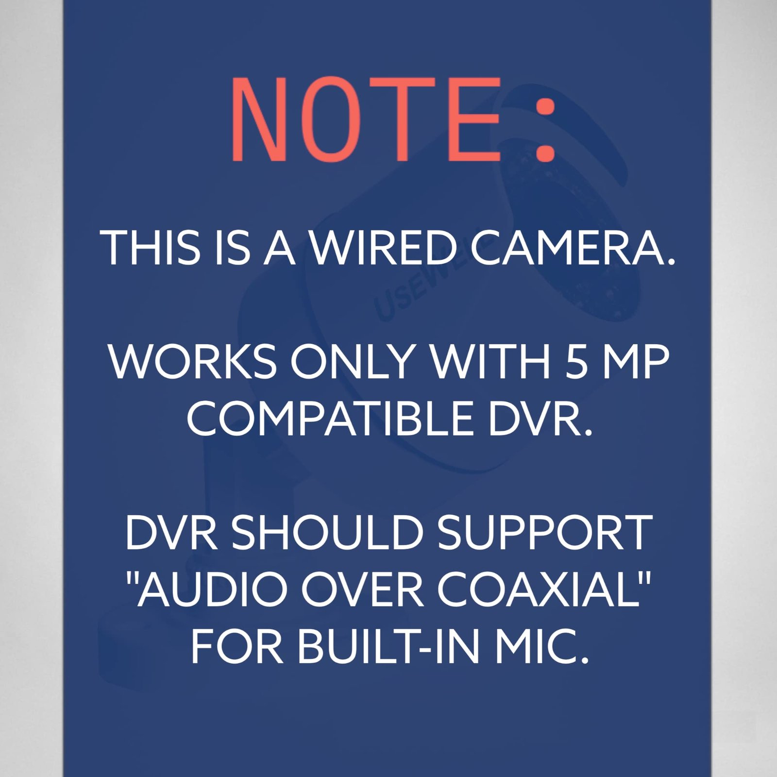 • Compatible with 5MP Supporting DVR only