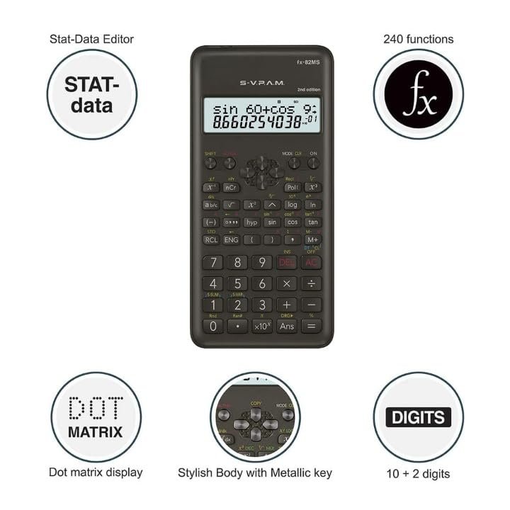 Details: The INSECTRA Plus Scientific Calculator — 2nd Edition is designed to deliver faster, clearer, and more reliable calculations for students, engineers, and professionals. Equipped with 240 advanced functions, it supports essential operations including algebra, statistics, fractions, permutations, combinations, logarithms, trigonometry, coordinate geometry, and scientific notation. Its large high-contrast display ensures improved readability during long study sessions, while the durable, responsive keys offer smooth and accurate input with every press. Crafted for academic excellence, this upgraded 2nd Edition delivers enhanced speed, improved stability, and a refined ergonomic layout for comfortable use. Whether you’re preparing for school exams, college coursework, engineering studies, or competitive tests like JEE, NEET, SSC, Banking, or State Board exams, INSECTRA Plus gives you a dependable tool for solving complex problems swiftly. Designed to meet practical classroom and laboratory needs, it supports multi-step calculations, equation recall, statistical analysis, and data review—helping learners focus on understanding, not rewriting. Compact, lightweight, and built for everyday use, the INSECTRA Plus Scientific Calculator ensures accurate outputs, long-term performance, and consistent reliability across academic and professional environments.