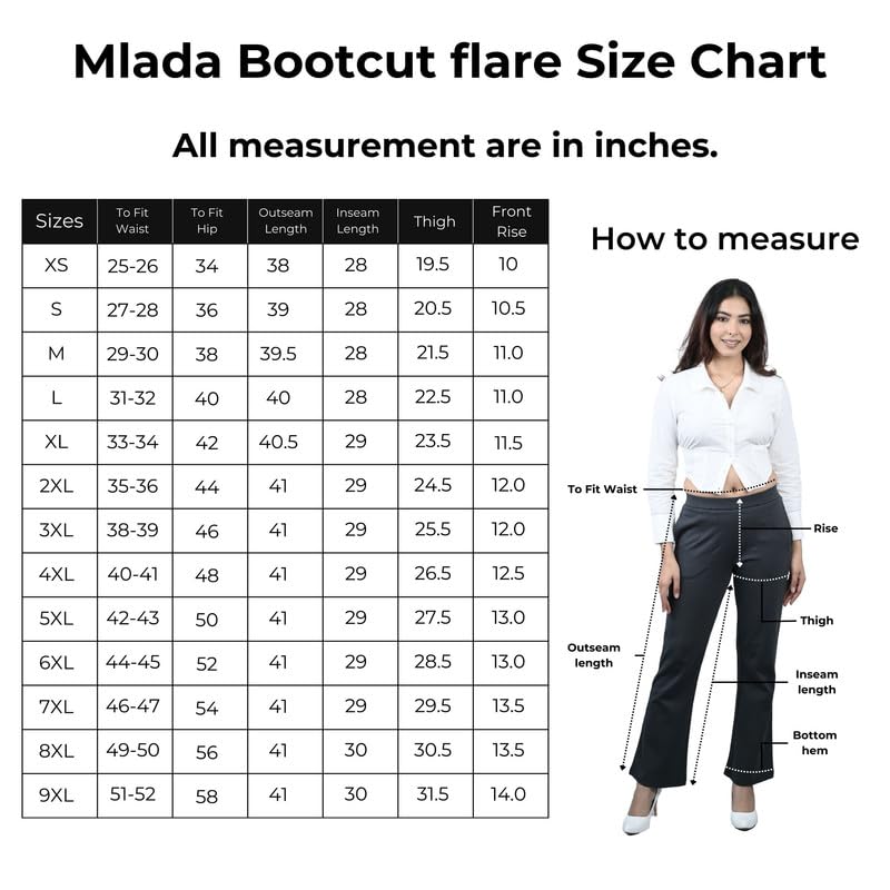 - Style Guide – Mlada’s Lycra Bootcut Flare Pants look great with a variety of outfits, including T-shirts, crop tops, blouses and can even be paired with a blazer. The Mlada Bootcut Flare Pants are available in exclusive colors that you won’t find anywhere else