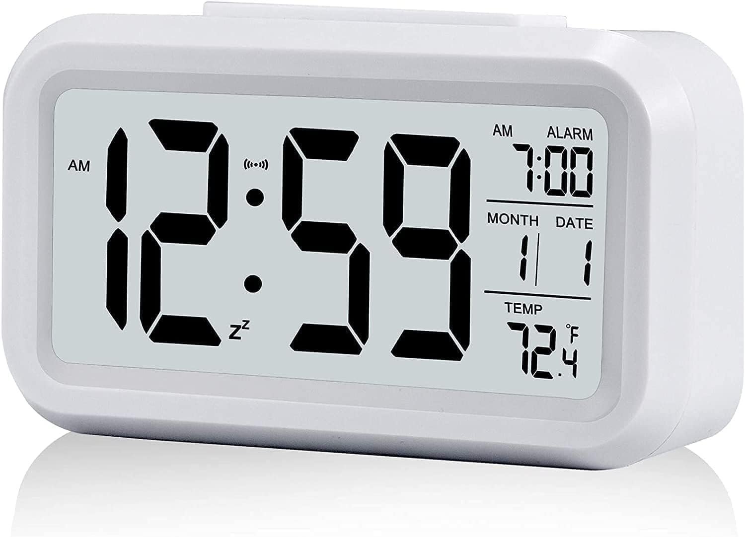 - ⏰【Smart Light Sensor】This digital clock has a background light and an intelligent night light sensor system. When you switch on the backup “SENSOR” control button, the background light will turn on in low light conditions. Needless worry the brightness, either too bright thus affecting your sleep or too dark to read time. During the day, you can always press the top light button to make the time more clearly visible.