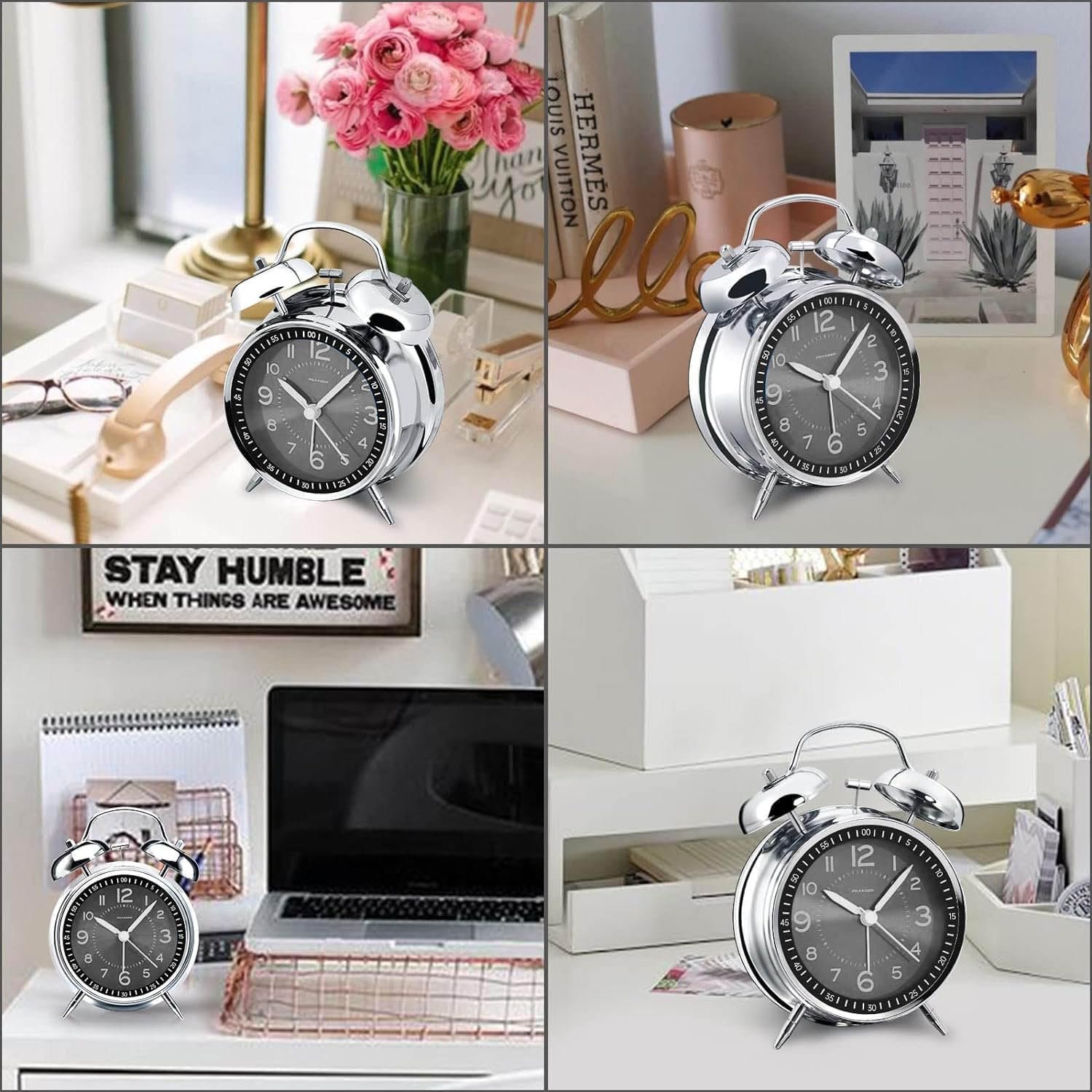 • 𝐒𝐢𝐥𝐞𝐧𝐭 𝐧𝐨𝐧-𝐭𝐢𝐜𝐤𝐢𝐧𝐠 𝐚𝐧𝐚𝐥𝐨𝐠 𝐚𝐥𝐚𝐫𝐦 𝐜𝐥𝐨𝐜𝐤 – High quality quartz sweep quartz movement ensures no tick-tick noise and accuracy timekeeping, delivering a good working and learning environment as well as a restful night sleep. Separate alarm switch, simple setting dials, easy to set and use.