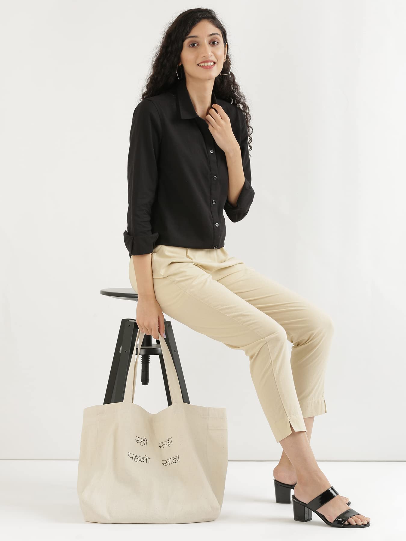 - Cotton Fabric: Experience pure comfort with these women trousers crafted from 100% natural cotton fabric. These cotton pants for women for daily use are perfect for every woman’s wardrobe, offering unmatched breathability and all-day comfort. The premium cotton fibers of trouser pants for women create a delightfully soft touch against your skin, making these beige trousers women your ideal companion for work, errands, or relaxing at home.
