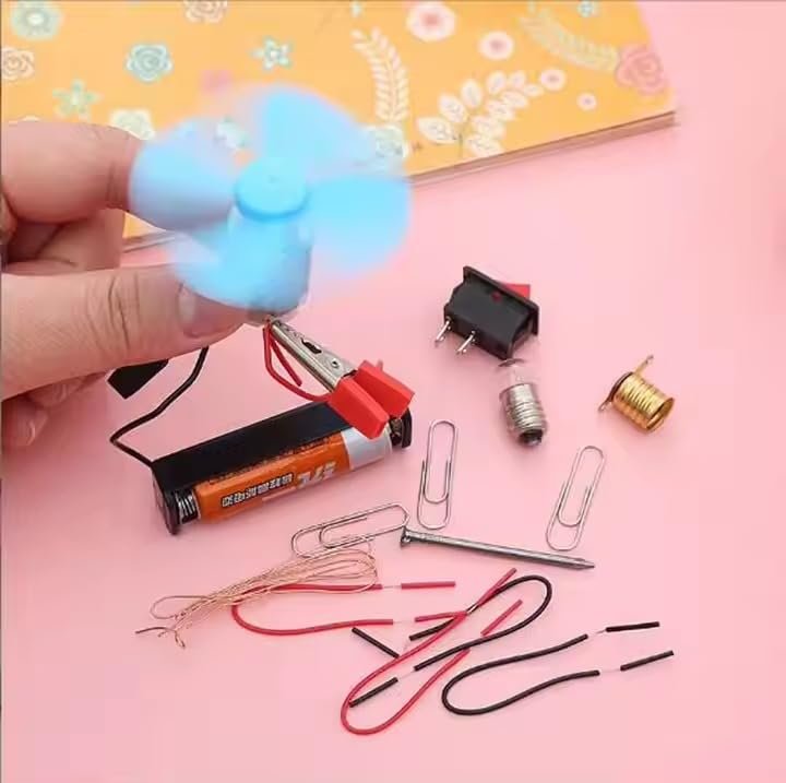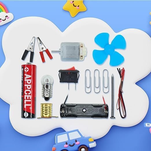 • All-in-One Set: Includes essential components such as batteries, wires, clips, mini fans, and light bulbs to create simple working models.