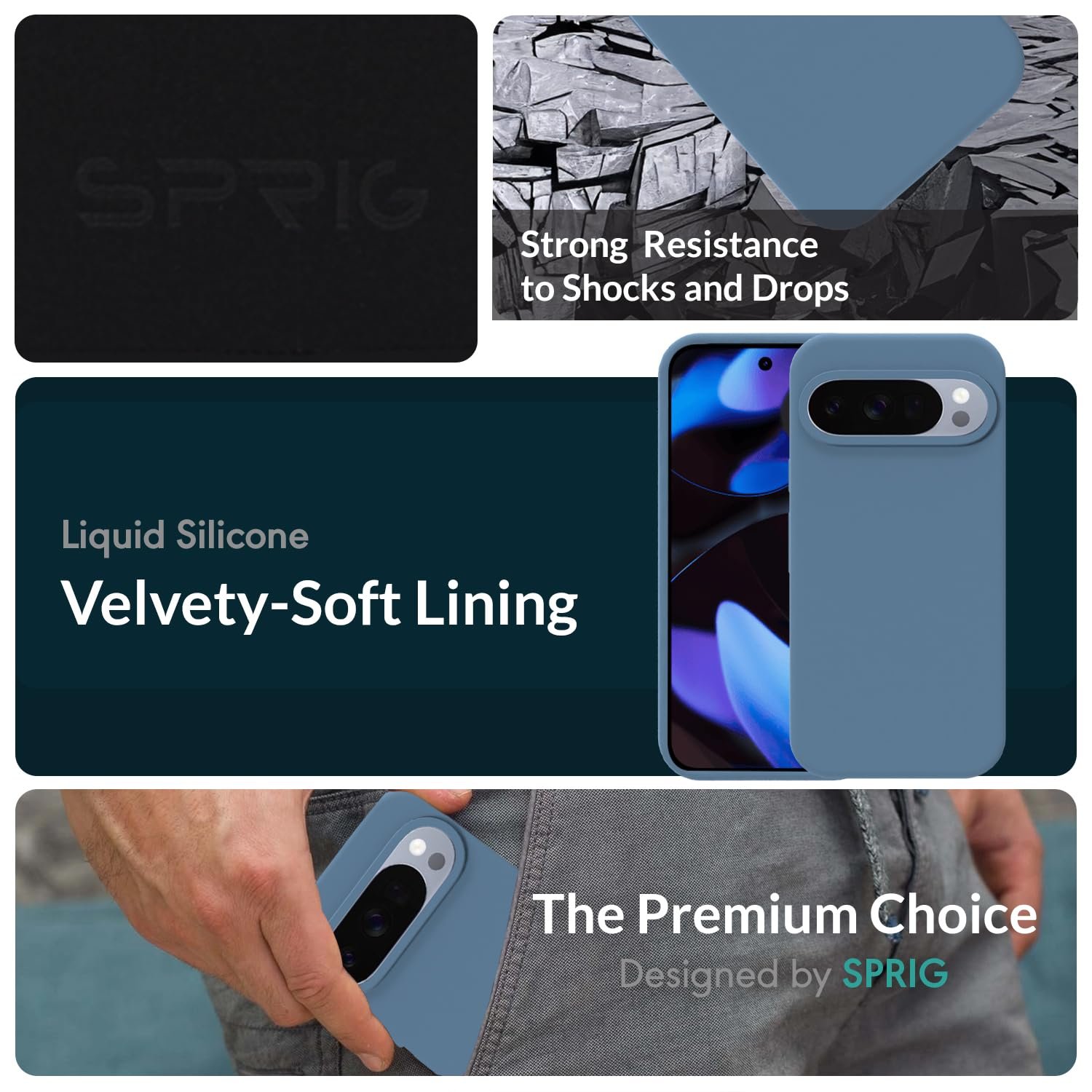 SPRIG Compatible with Google Pixel 10 Pro XL Premium SilkTone Back Cover Drop Tested Shock Proof Mobile Case for Men, Women, Boys and Girls with Camera Protection (Denim Blue)